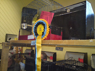 Long day - up at 5 and two hour drive in the dark to Carlisle National Show. Best Flighted Novice and Best Old Varieties Canary Association Novice. Six First place cards beating the only competition but not Best Novice overall which went to Alison Cook who kindly sold me a sibling of that winner - well pleased.